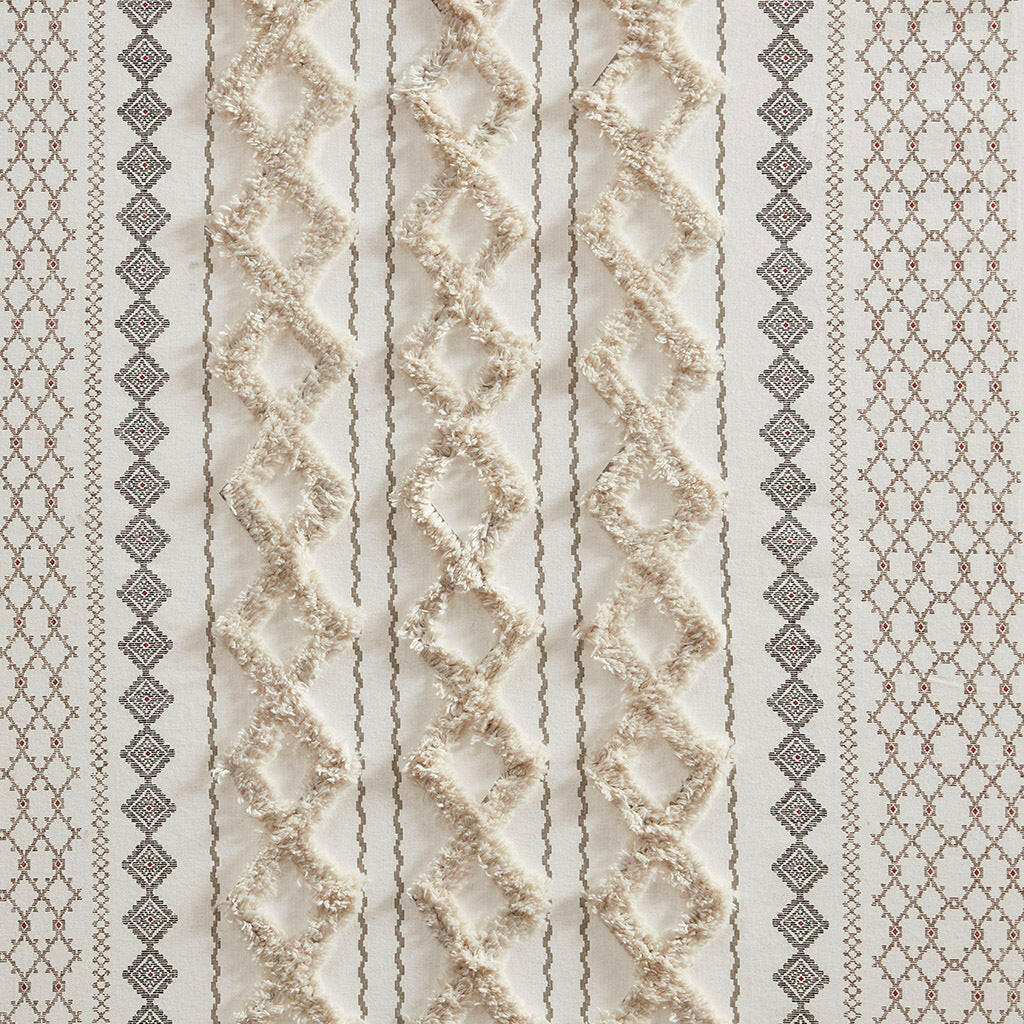 Cotton Printed Shower Curtain With Chenille Ivory Cotton