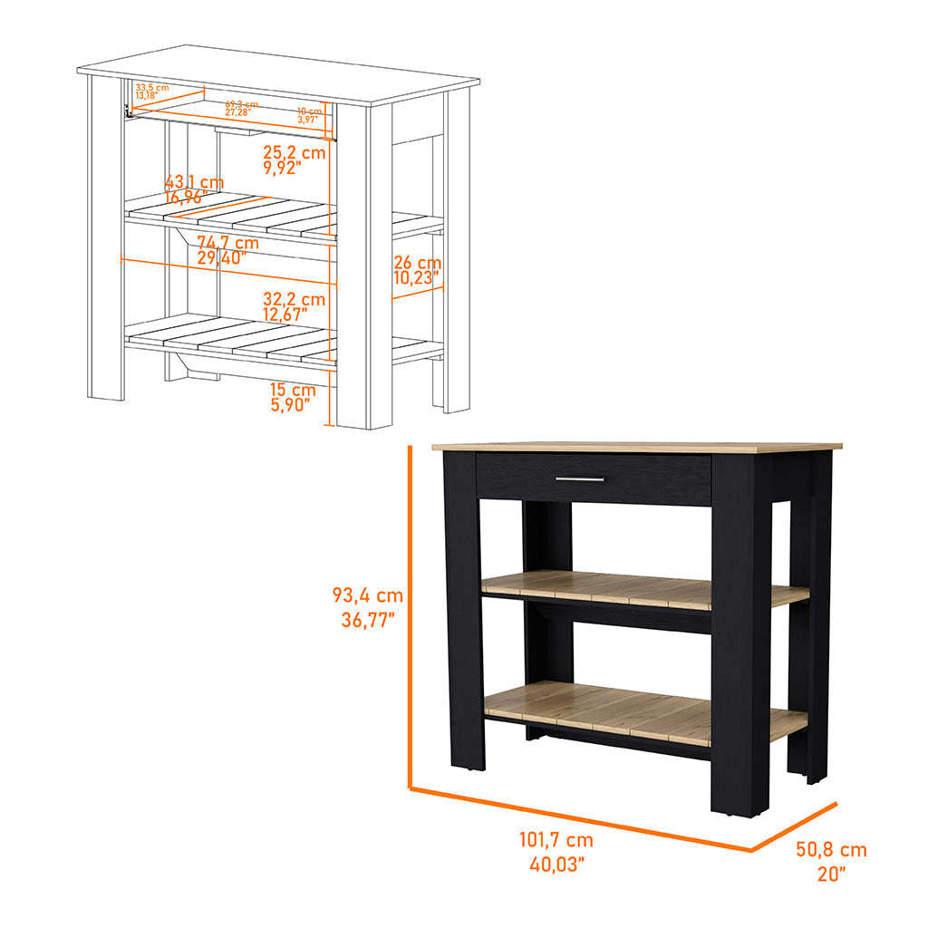 Brooklyn Kitchen Island, Three Concealed Shelves Multicolor Kitchen Modern Rectangular Kitchen Island Sets Melamine Engineered Wood
