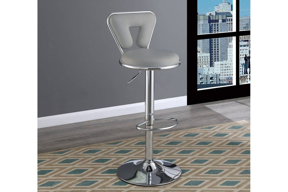 Adjustable Bar Stool Gas Lift Chair Gray Faux Leather Chrome Base Metal Frame Modern Stylish Set Of 2 Chairs Gray Dining Room Contemporary,Modern Bar Stools Metal