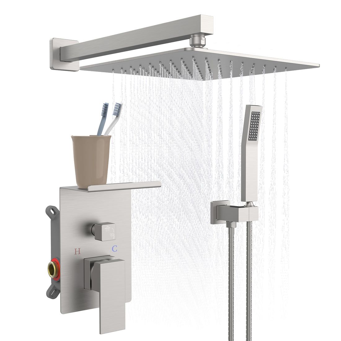 Name: Rainfall Shower System With Storage Rack 10 inch Shower Faucet Set Brushed Nickel with...