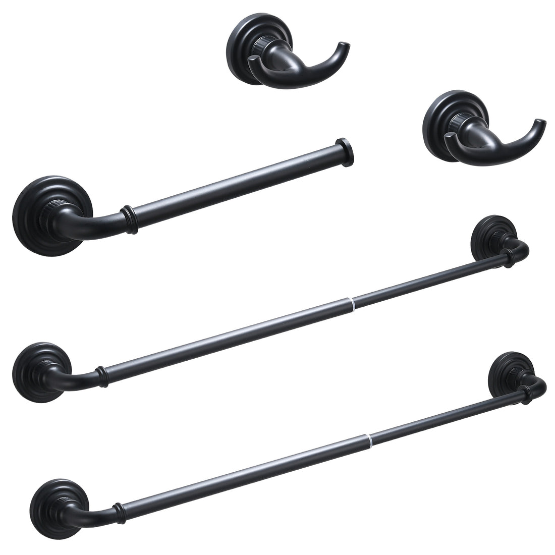 Name: Bathroom Hardware Set Black 4-Pieces Bathroom Towel Rack 24 Inches Adjustable Bathroom Accessories Set...