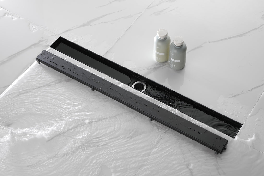 32 Inches Linear Shower Drain With Removable Cover, 304 Stainless Shower Drain Included Hair Strainer And Leveling Feet Matte Black Stainless Steel