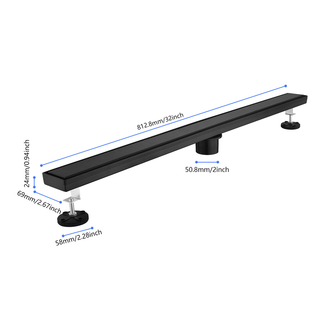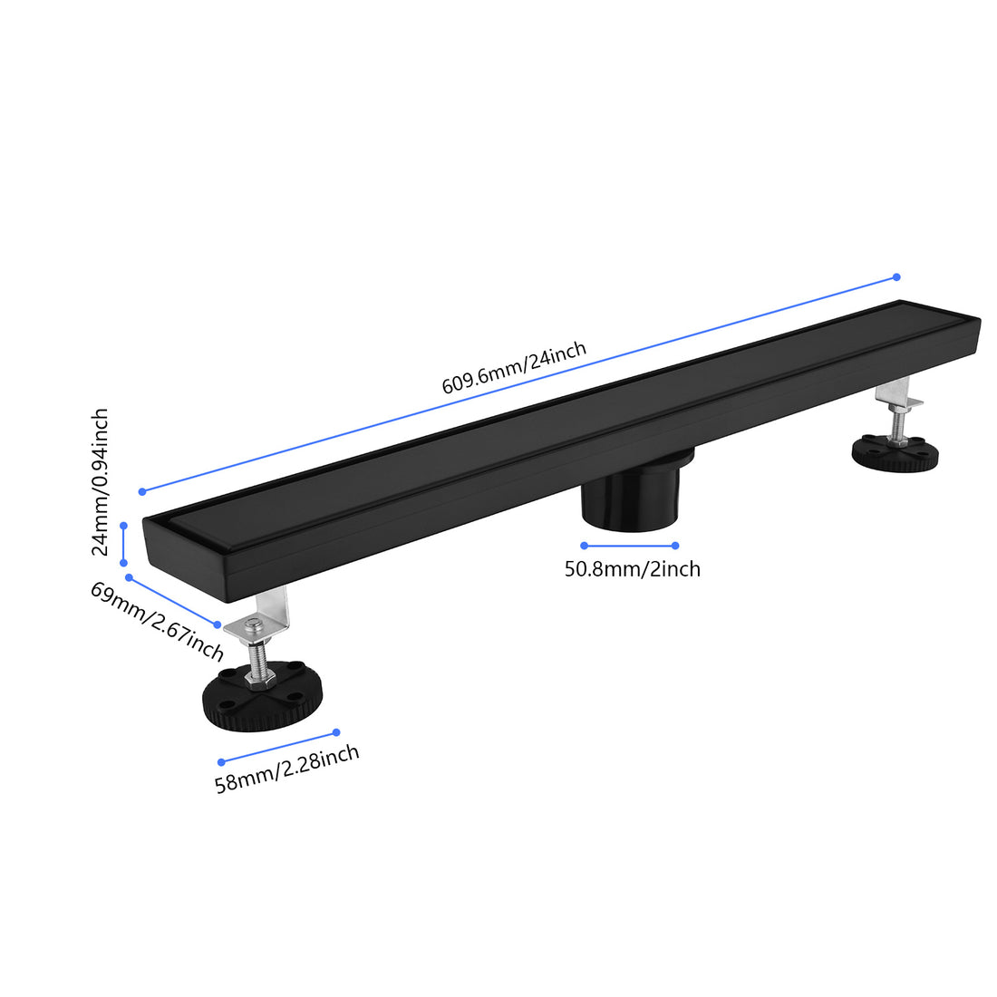 Name: 24 Inches Linear Shower Drain, Included Hair Strainer and Leveling Feet Description: The drainage...