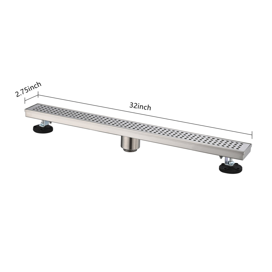 Name: 32 Inches Linear Shower Drain with Removable Quadrato Pattern Grate, 304 Stainless Shower Drain...