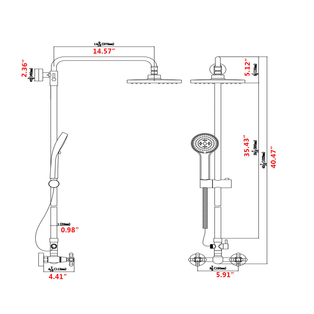 Name: Wall Mounted Shower System in Matte Black with Shower Head, Handheld Shower, 3 Body...