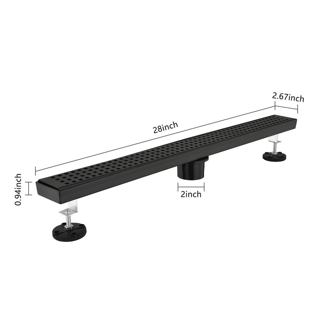 Name: 28 Inches Linear Shower Drain, Included Hair Strainer and Leveling Feet Description: Linear drains...