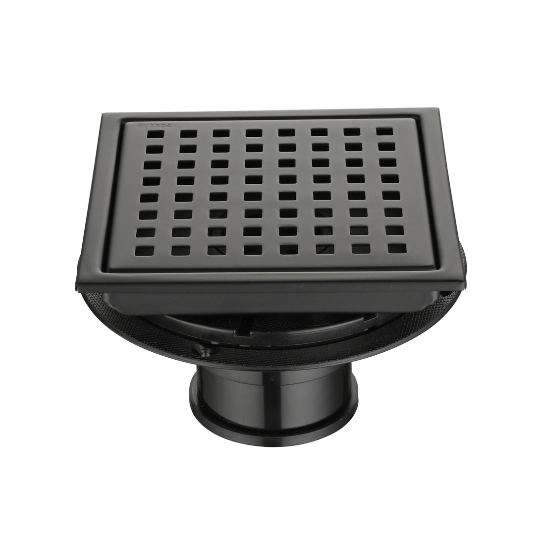 6 Inch Square Shower Floor Drain Square Shower Floor Drain With Flange,Pattern Grate Removable,Food Grade Sus 304 Stainless Steel Matte Black Stainless Steel