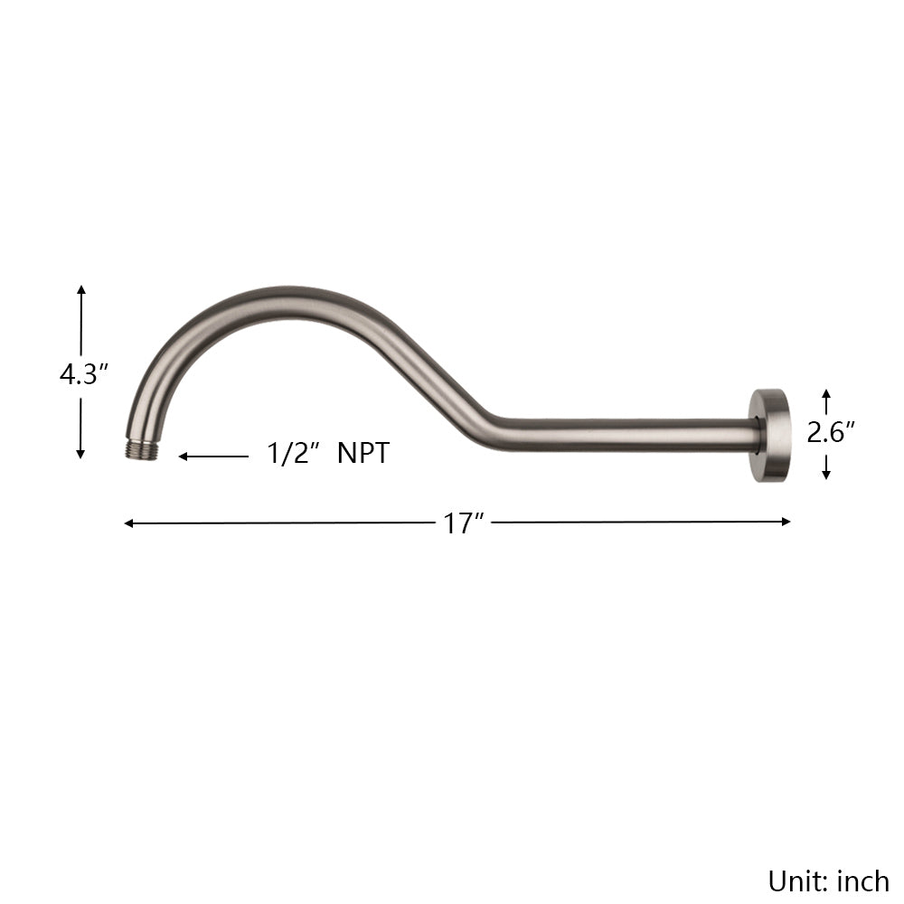 Name: 17" Shower Arm with Flange, Brushed Nickel Characteristics: High-quality material: Crafted from Sus304 premium...