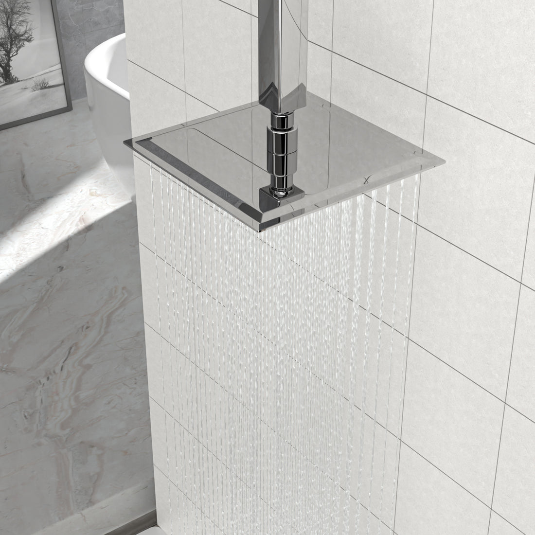 Name: 8" Square Rainfall Shower Head, Wall/Ceiling Mounted, Chrome Characteristics: 304 stainless steel casted shower...