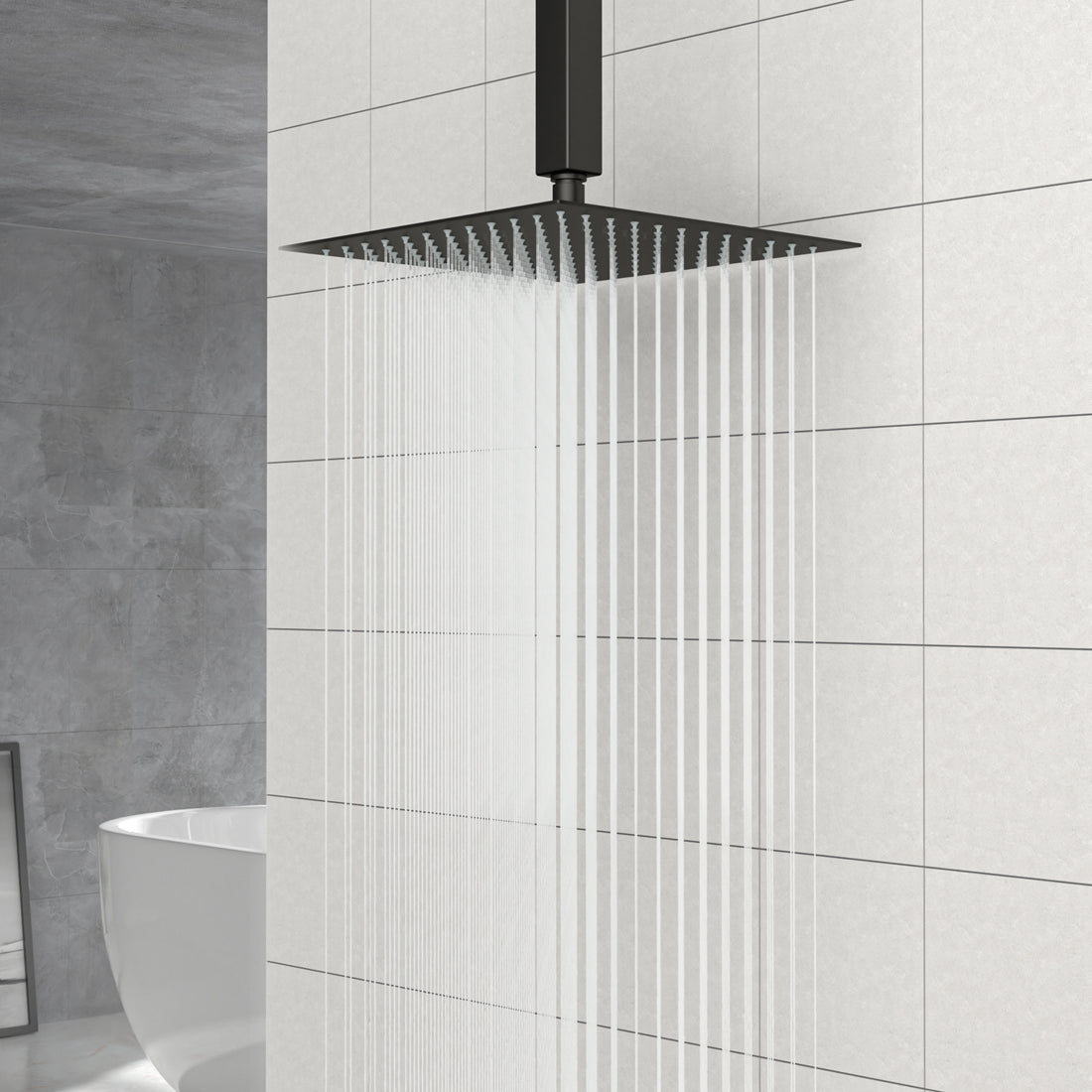 Name: 10" Black Square Rainfall Shower Head, Wall/Ceiling Mounted Characteristics: 304 stainless steel casted shower...
