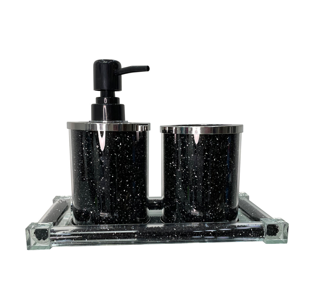 Ambrose Exquisite 3 Piece Soap Dispenser And Toothbrush Holder With Tray Black Glass