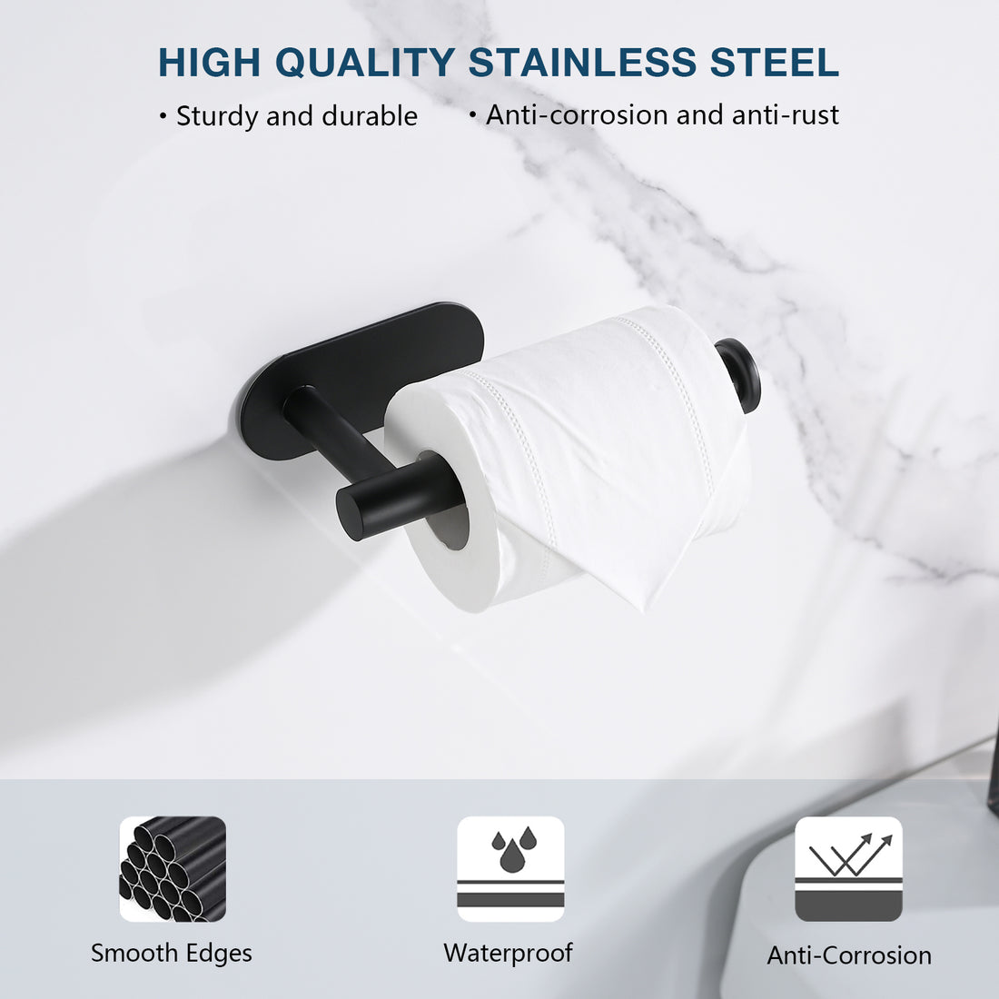 Toilet Paper Holder Self Adhesive, Stainless Steel Rustproof Adhesive Toilet Roll Holder No Drilling Matte Black Stainless Steel