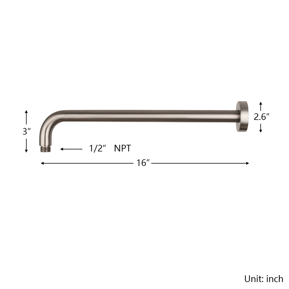 Name: 16" Shower Arm with Flange, Brushed Nickel Characteristics: High-quality material: Crafted from Sus304 premium...