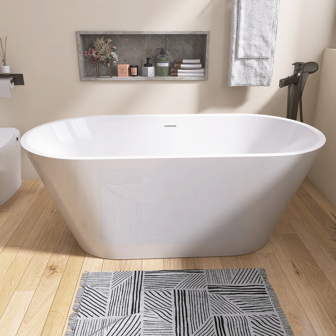55 Inch Acrylic Freestanding Bathtub Contemporary Soaking White Tub With Overflow And Pop Up Drain Gloss White Gloss White Oval Bathroom Freestanding Tubs Polished Less Than 59 In Contemporary,Modern Soaking Center Fiberglass Acrylic