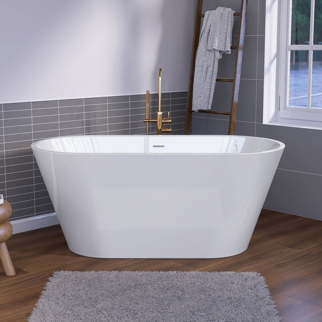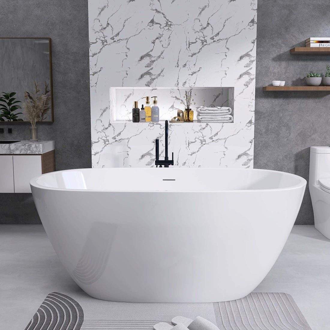 51 Inch Acrylic Freestanding Bathtub Contemporary Soaking White Tub With Overflow And Pop Up Drain Gloss White Gloss White Oval Bathroom Freestanding Tubs Polished Less Than 59 In Modern Soaking Center Fiberglass Acrylic