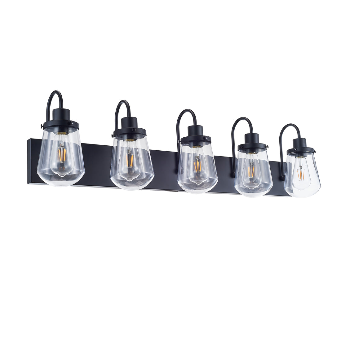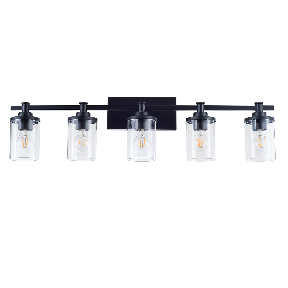 Name: 5-Light E26 Bulb Vanity Lights,Matte Black Bathroom Vanity Light Fixtures with Clear Glass, Indoor...
