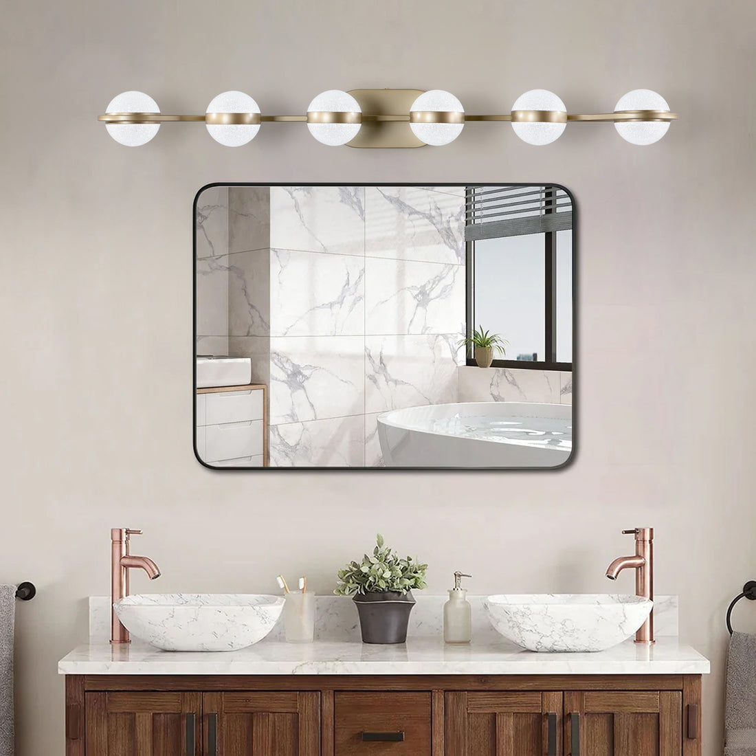 Name: Golden 6-Light Vanity Light with Clear Glass Shades, Modern Iron Metal Bathroom Wall Fixture...
