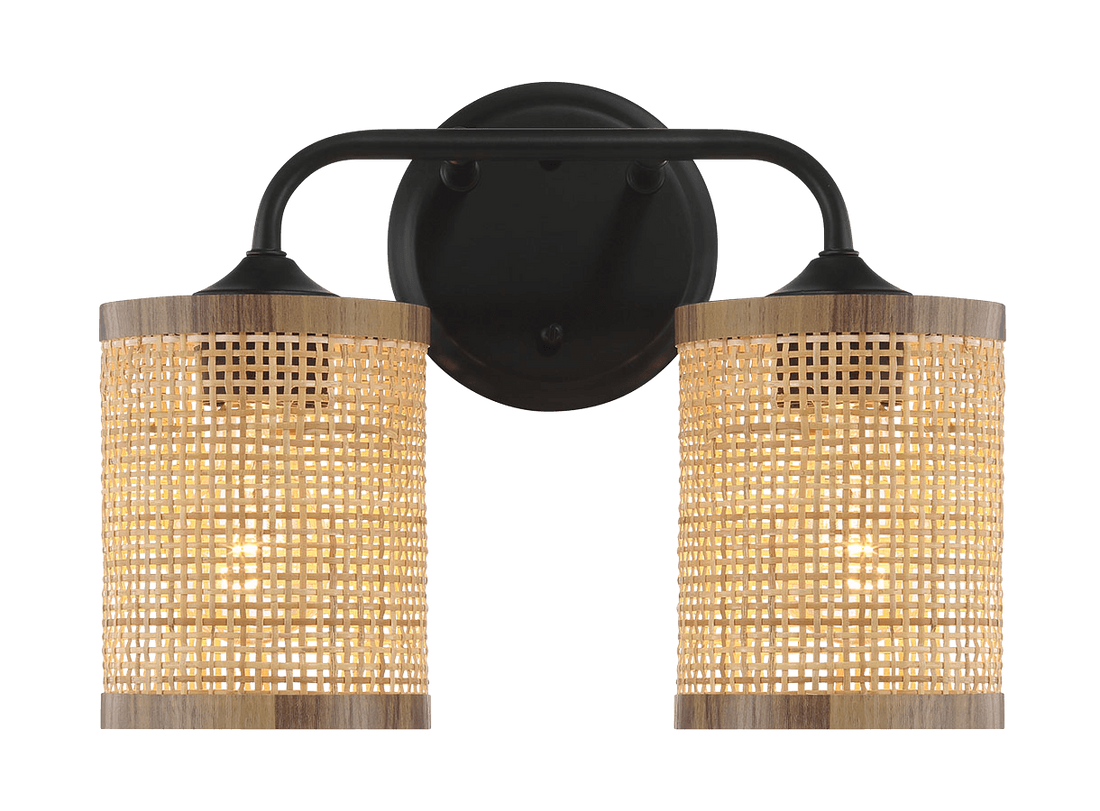 Quell Double Light Vanity With Natural Rattan Shade Wall Lamp Black,Rattan Metal,Rattan