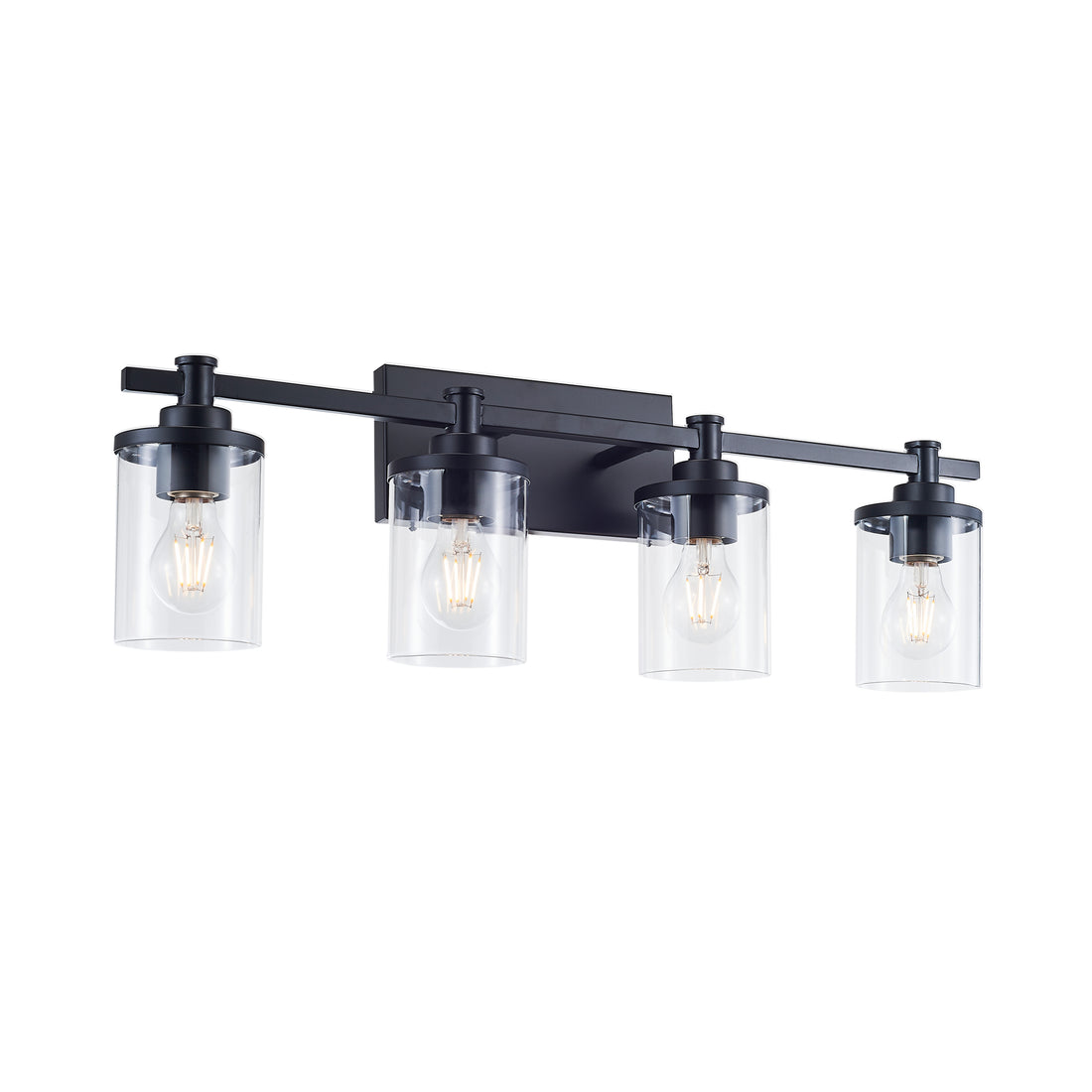 4 Light E26 Bulb Vanity Lights,Matte Black Bathroom Vanity Light Fixtures With Clear Glass, Wall Lamp For Bathroom, Living Room, Mirror, Bedroom,Hallway Matte Black Modern Glass,Iron