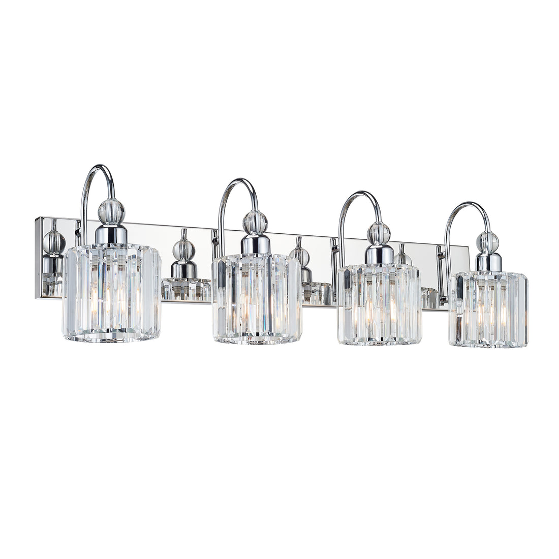 Indoor Decorative Lighting Iron Stainless Steel Crystal Bathroom Vanity Light Chrome Color 4 Light E26 Bulb Wall Lights Chrome Modern Crystal