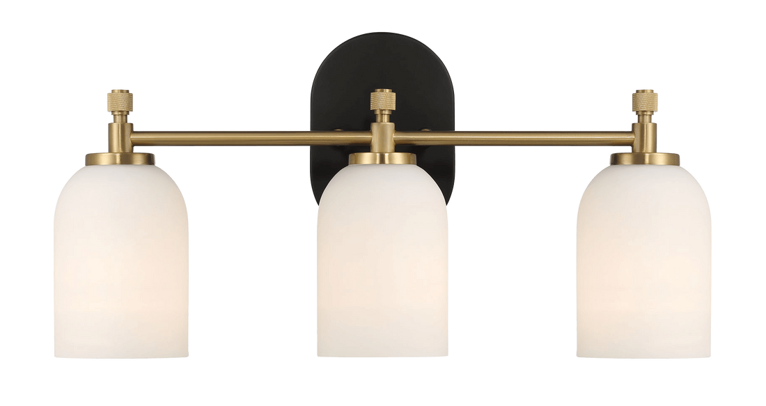 Meadows Three Lights Vanity Brushed Gold Bathroom Wall Light For Bathroom Over Mirror 20.5"W 10.125"H 5.5"E With White Frosted Glass Black,Gold,White Glass,Metal