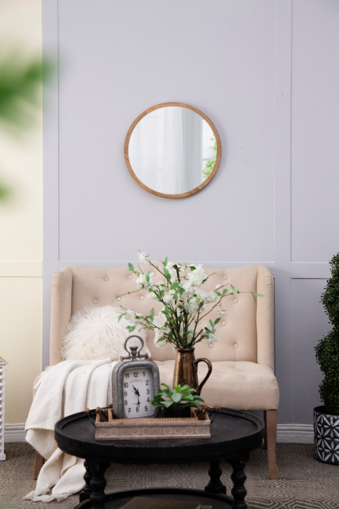Name: 20" x 20" Circle Wall Mirror with Wooden Frame, Wall Mirror for Living Room,...