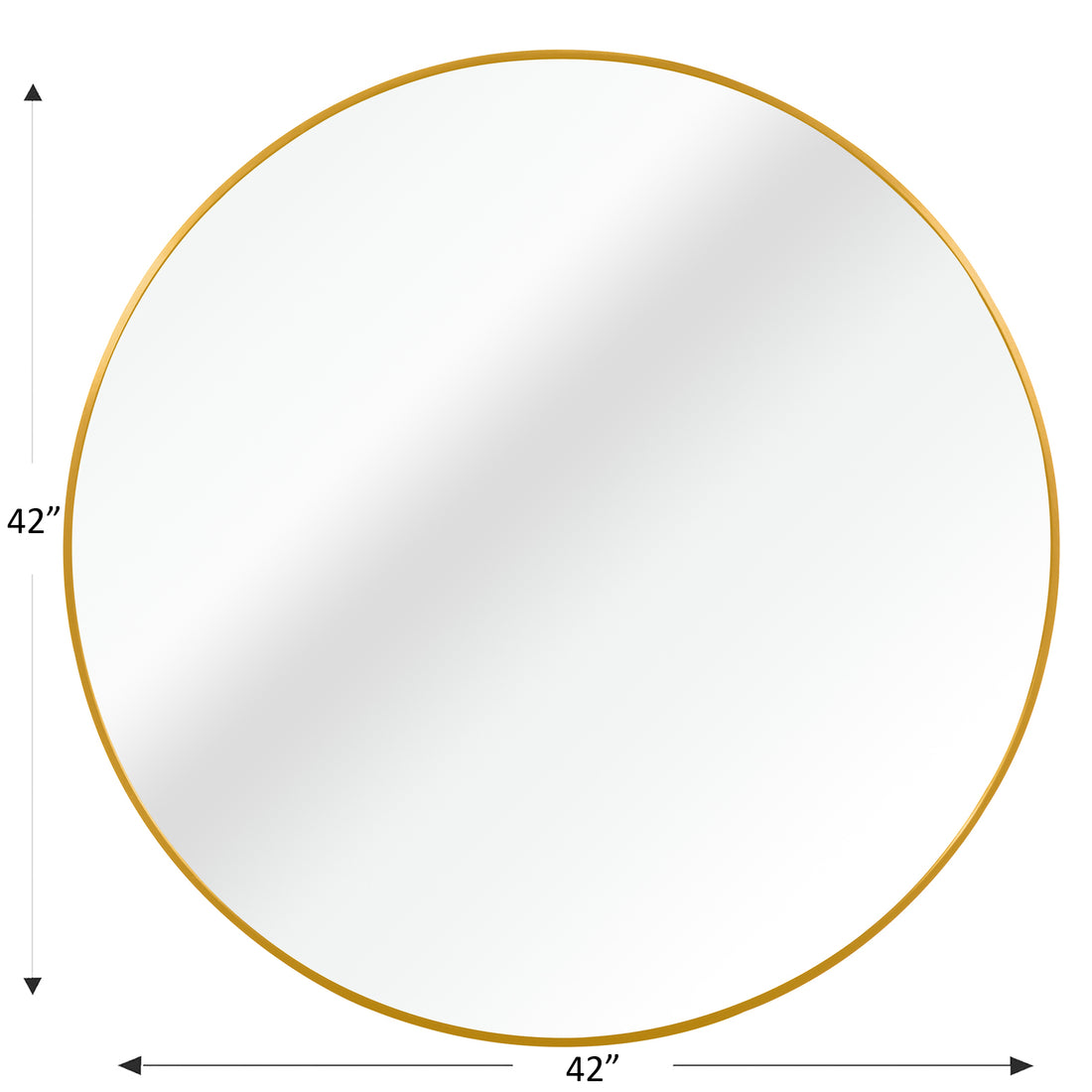 Wall Mirror 42 Inch Gold Circular Mirror Metal Framed Mirror Round Vanity Mirror Dressing Mirror, For Bathroom, Living Room, Bedroom Wall Decor Gold Glass