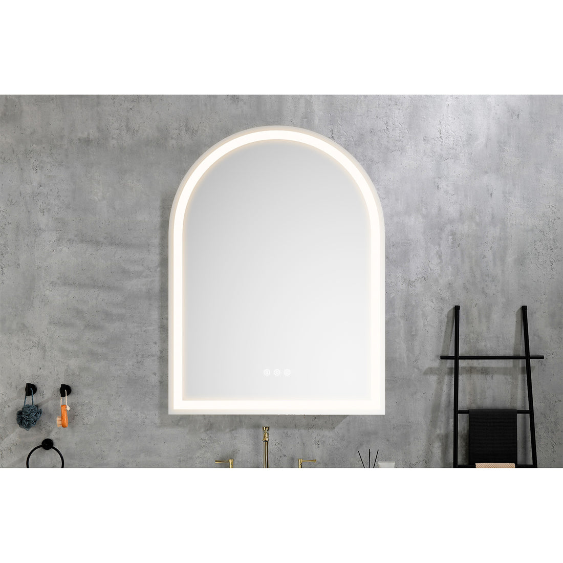 Bathroom Led Mirror Is Multi Functional And Each Function Is Controlled By A Smart Touch Button. Gold Ceramic