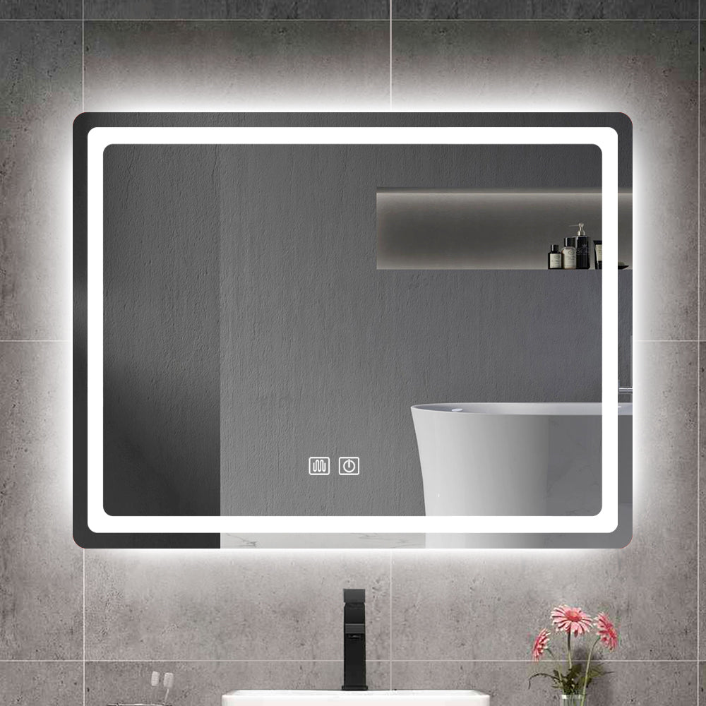 36"X28"Dimmable Led Bathroom Mirror Wall Mounted Anti Fog Waterproof Vanity Mirror White Black Aluminium,Tempered Glass