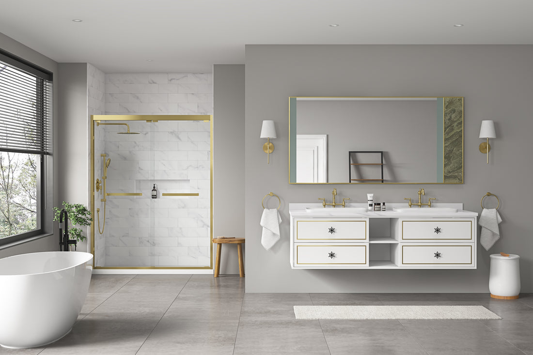 48*36 Led Lighted Bathroom Wall Mounted Mirror With High Lumen Anti Fog Separately Control Gold Aluminium