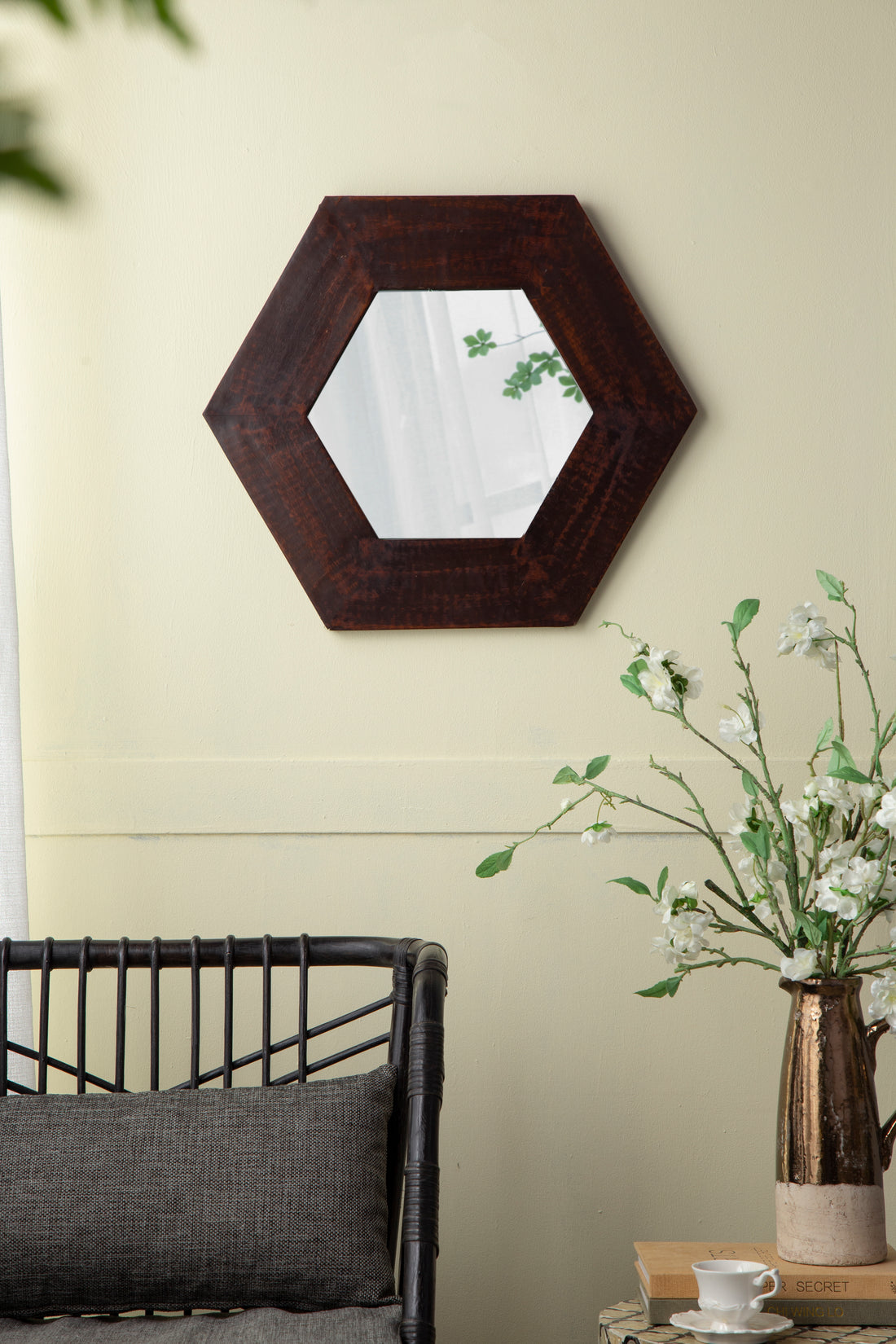 Name: 18.5" x 18.5" Hexagon Mirror with Solid Wood Frame, Wall Decor for Living Room...