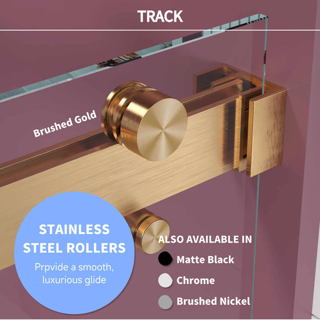6076 Brushed Gold Frameless One Fixed And One Shifted Shower Door,70Mm 304 Stainless Steel Large Pulleys With Adjustable Soft Closing Function,With Nano Easy Cleaning,Stick Explosion Proof Menbrance