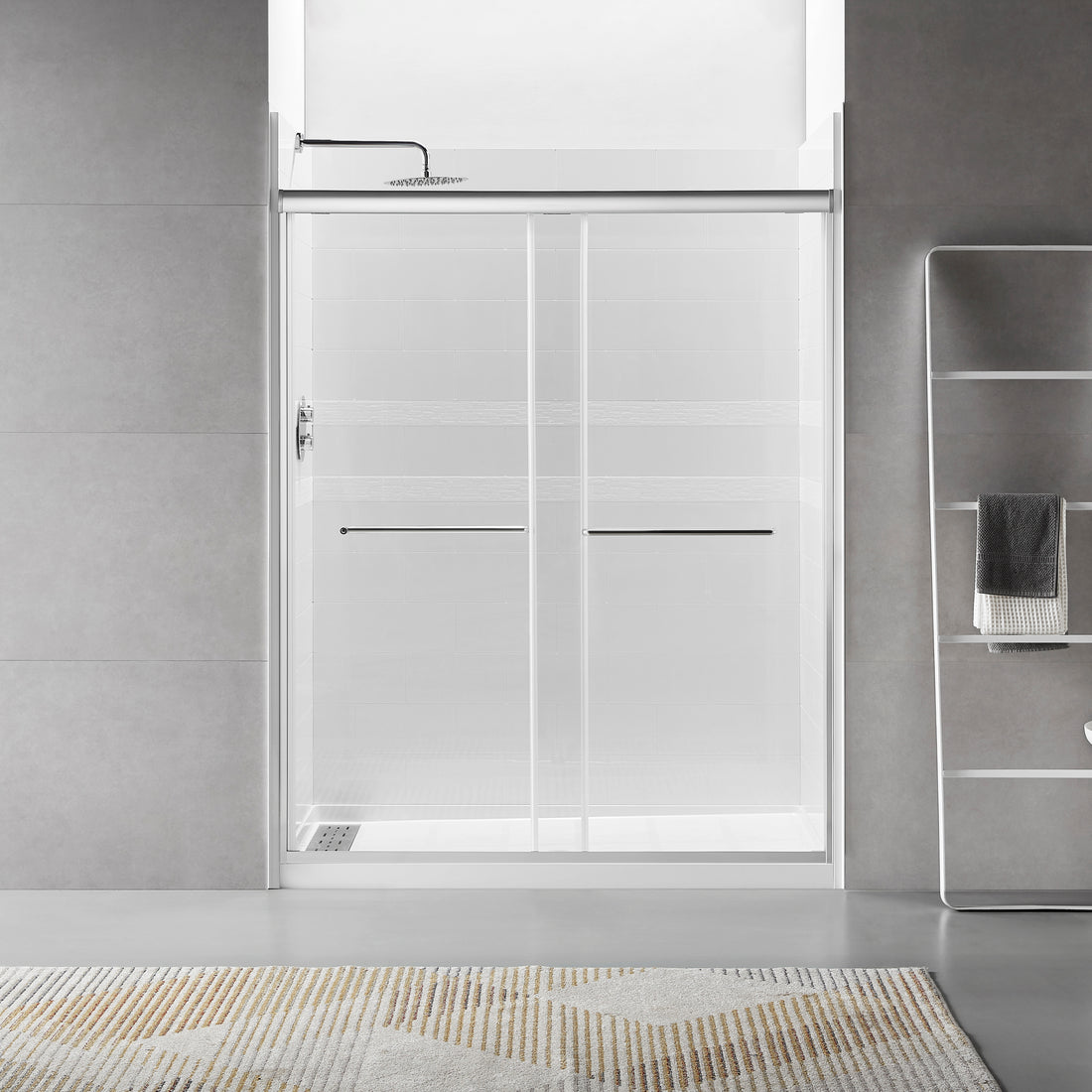 56 60 In. W X 72 In. H Semi Frameless Shower Door, Double Sliding Shower Door, 1 4" 6Mm Clear Tempered Glass Shower Door With Explosion Proof Film, Chrome 24D212S 60C Chrome Tempered Glass