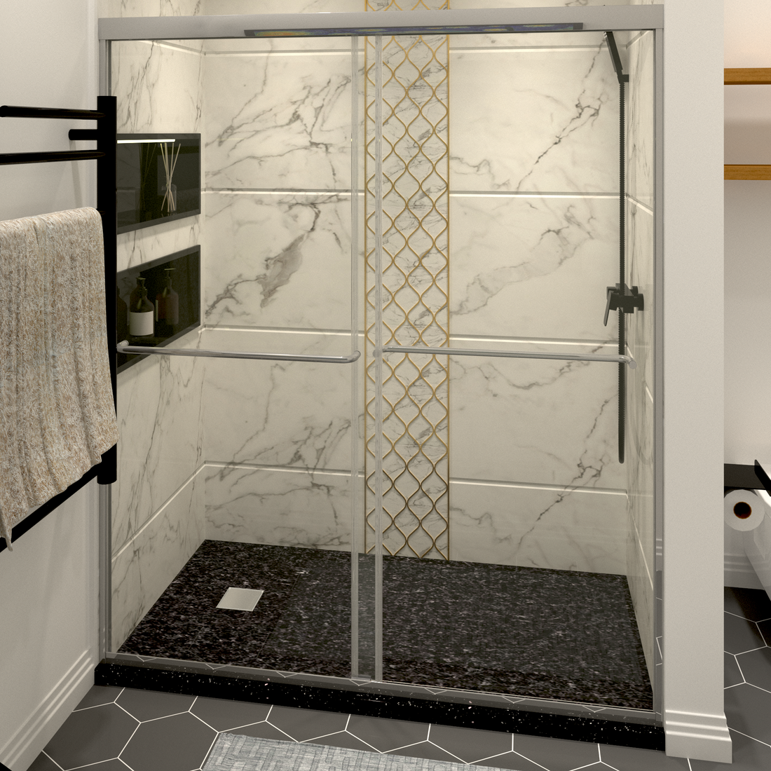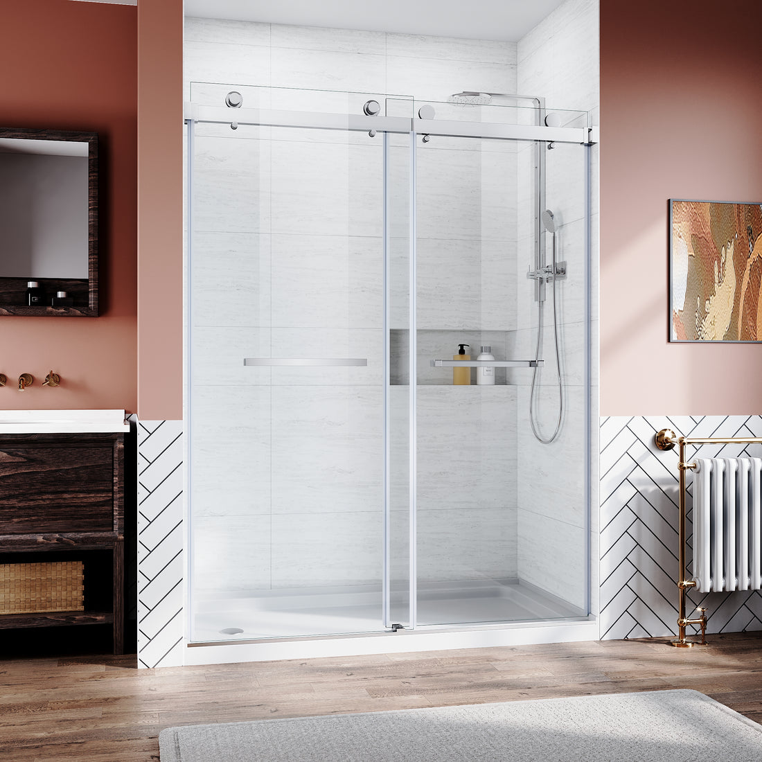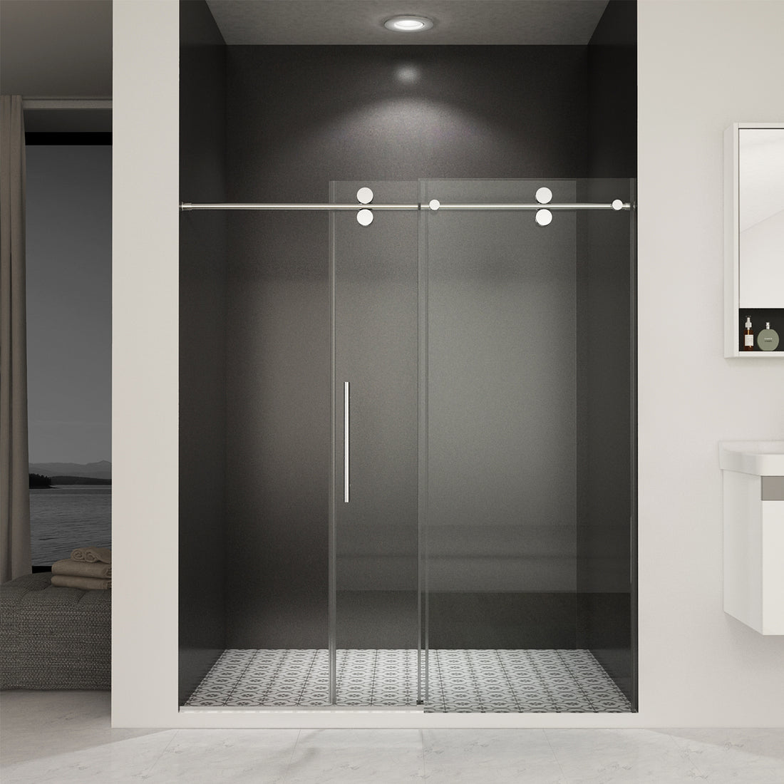 Frameless Sliding Shower Glass Door 56 60 In.W X 76 In. H,3 8" 10Mm Thick Clear Tempered Glass,Heavy Duty Stainless Steel Hardwares,Chrome Finish Chrome Stainless Steel