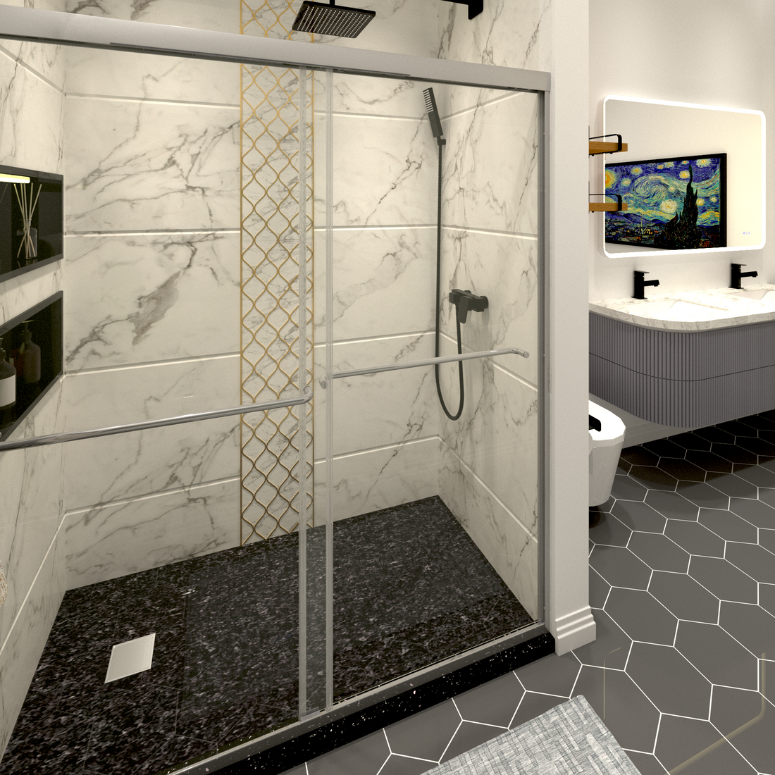 Sliding Shower Glass Door 56 60 In. W X 72 In. H, Adjustable Semi Frameless Shower Door, Certified Thick Clear Clear Tempered Glass, 304 Stainless Steel Handles, Grey Metallic Grey Aluminum