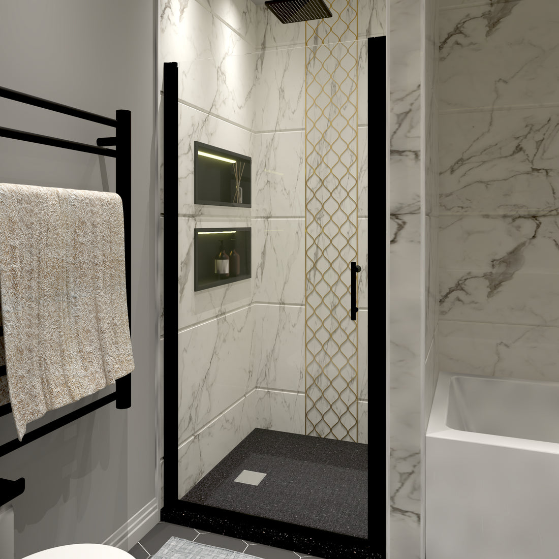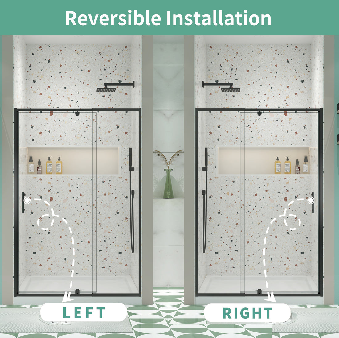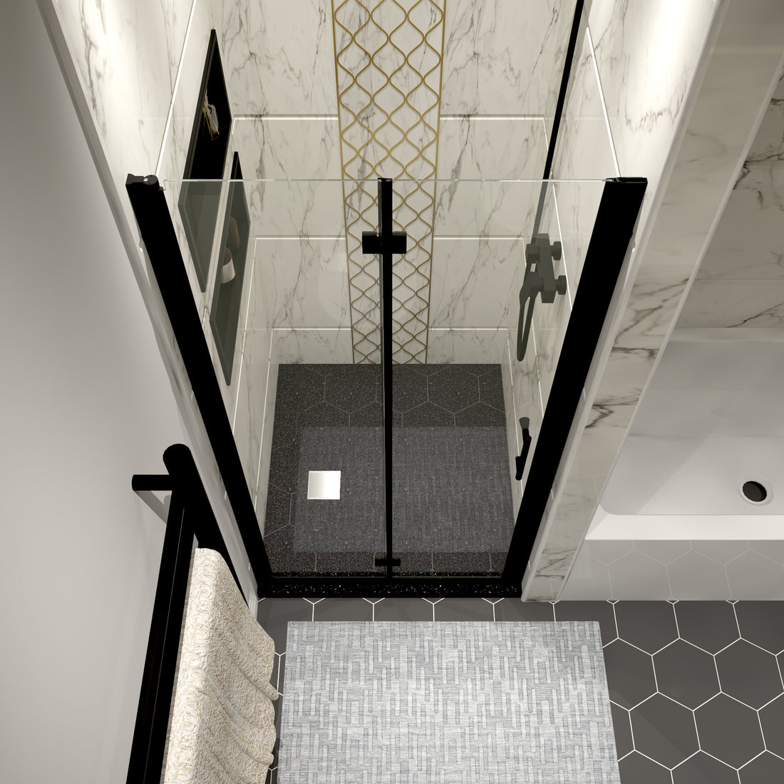 58 58 2 1In. W X 71 In. H Semi Frameless Double Hinges Shower Door In Matte Black,Tempered Glass,Reversible Installation Black Glass
