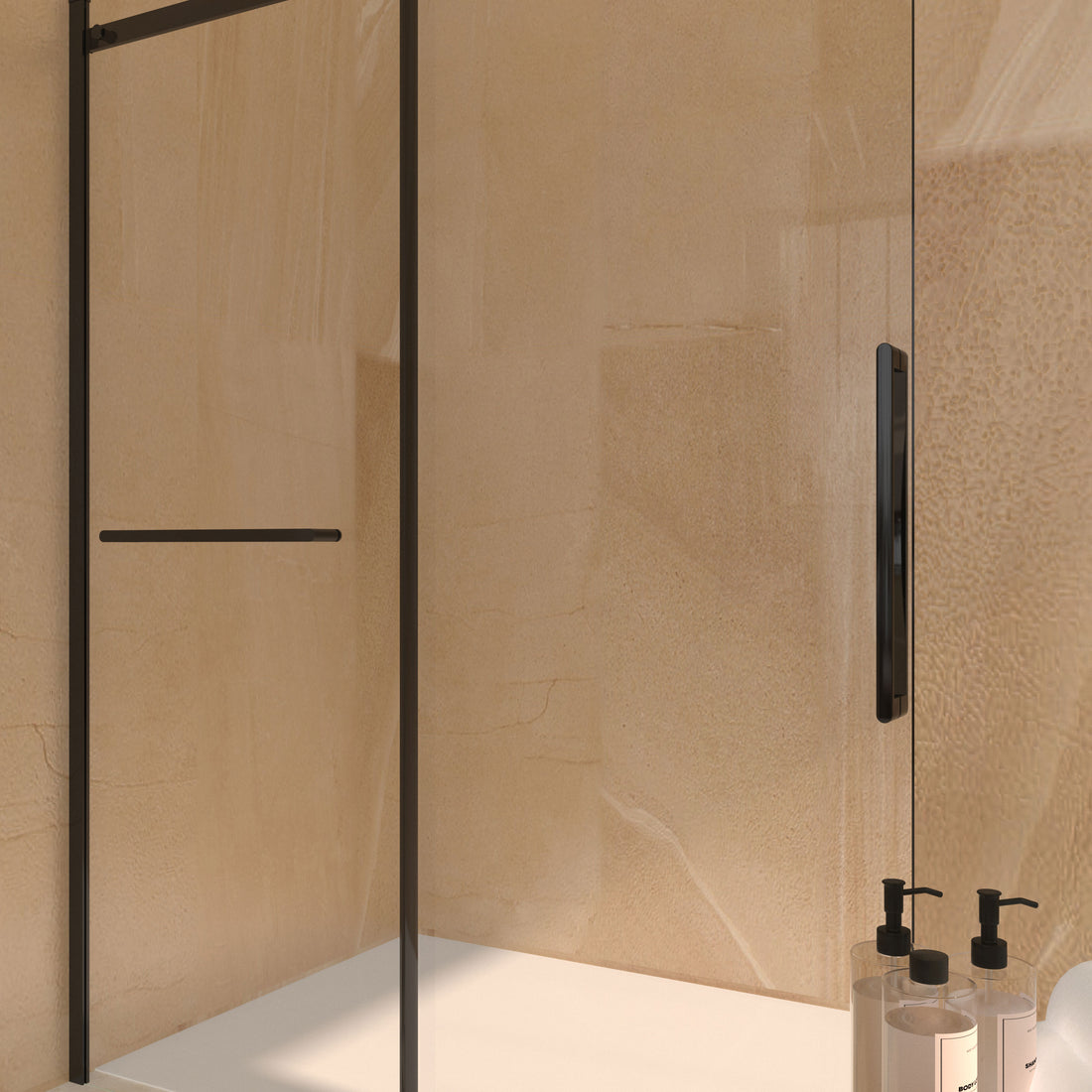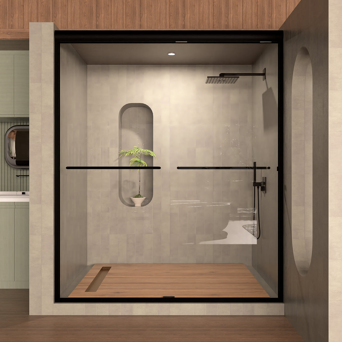 Glass Shower Door, Sliding Door, With 5 16" Tempered Glass And Matted Black Finish Matte Black Stainless Steel