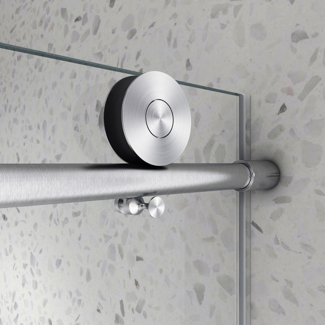 6063 Brushed Nickel Frameless One Fixed And One Shifted Shower Door,70Mm 304 Stainless Steel Large Pulleys With Adjustable Soft Closing Function,With Nano Easy Cleaning,Stick Explosion Proof Menbrance Brushed Nickel Bathroom American Design,Minimalist
