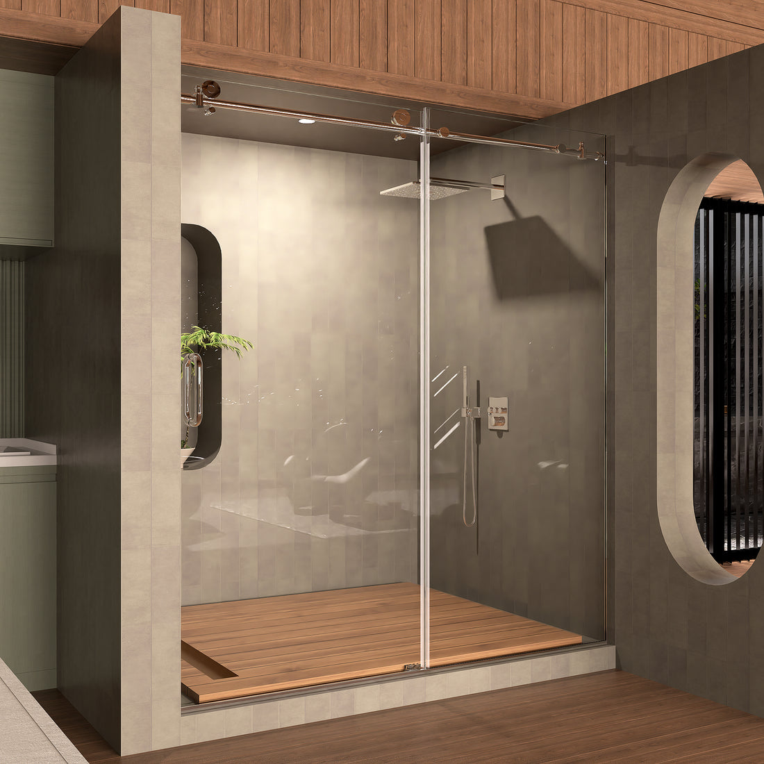 Frameless Sliding Shower Door 58 60 In. W X 76 In. H, Bathroom Sliding Door With 5 16" Clear Tempered Glass, Chrome Finish, Designed For Smooth Door Closing Chrome Stainless Steel