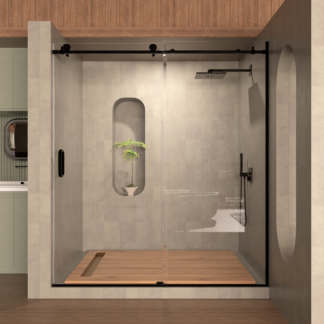 Frameless Sliding Glass Shower Doors 72" Width X 76"Height With 3 8" 10Mm Clear Tempered Glass, Matt Black Finish Matt Black Bathroom American Design Stainless Steel Tempered Glass