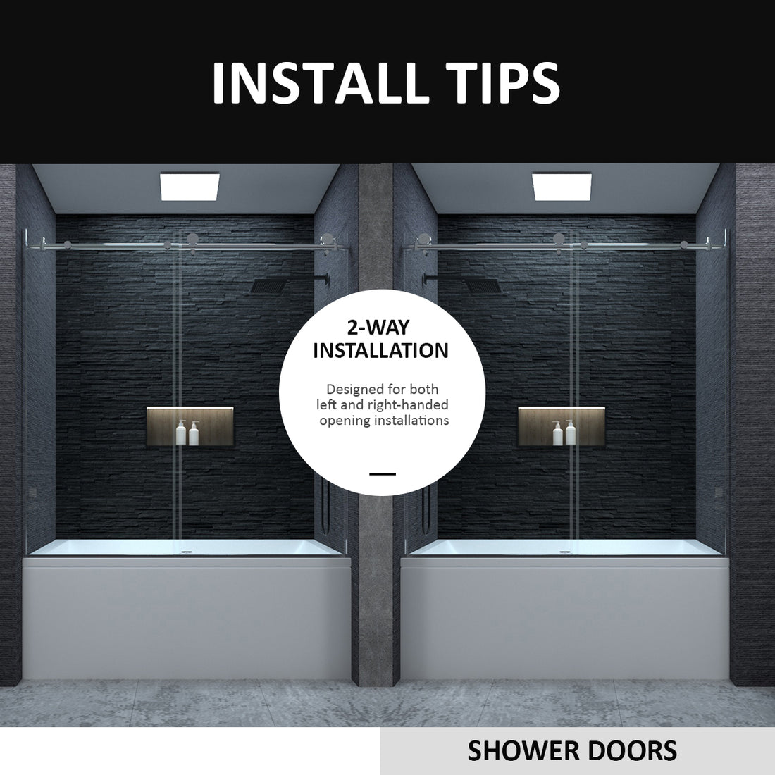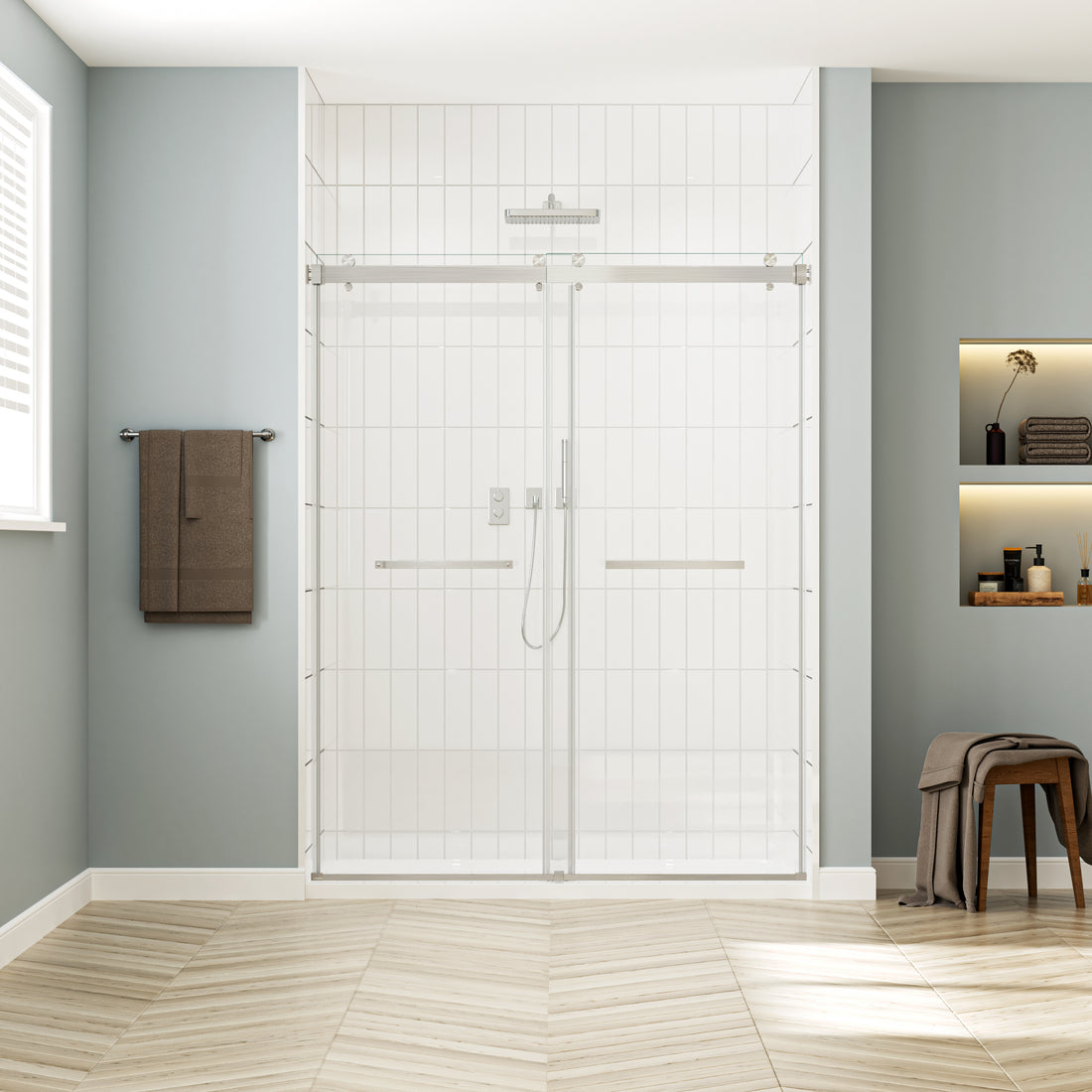 Sliding Shower Glass Door 56 60 In. W X 72 In. H, Adjustable Semi Frameless Shower Door, Certified Thick Clear Clear Tempered Glass, 304 Stainless Steel Handles, Chrome Finish Chrome Aluminum