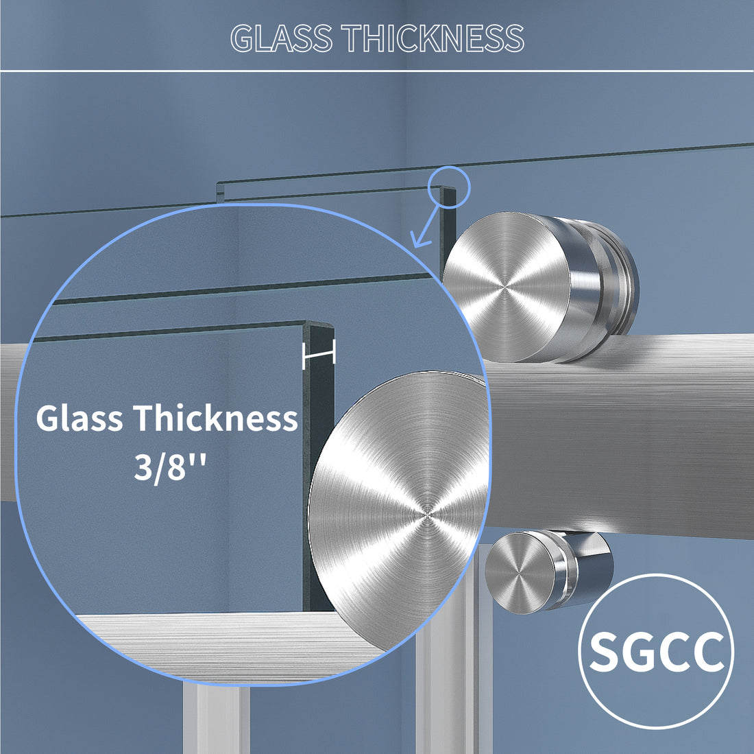 Name: Frameless Sliding Shower Glass Door 56-60 in.W x 76 in. H,3/8"(10mm) Thick Clear Tempered...