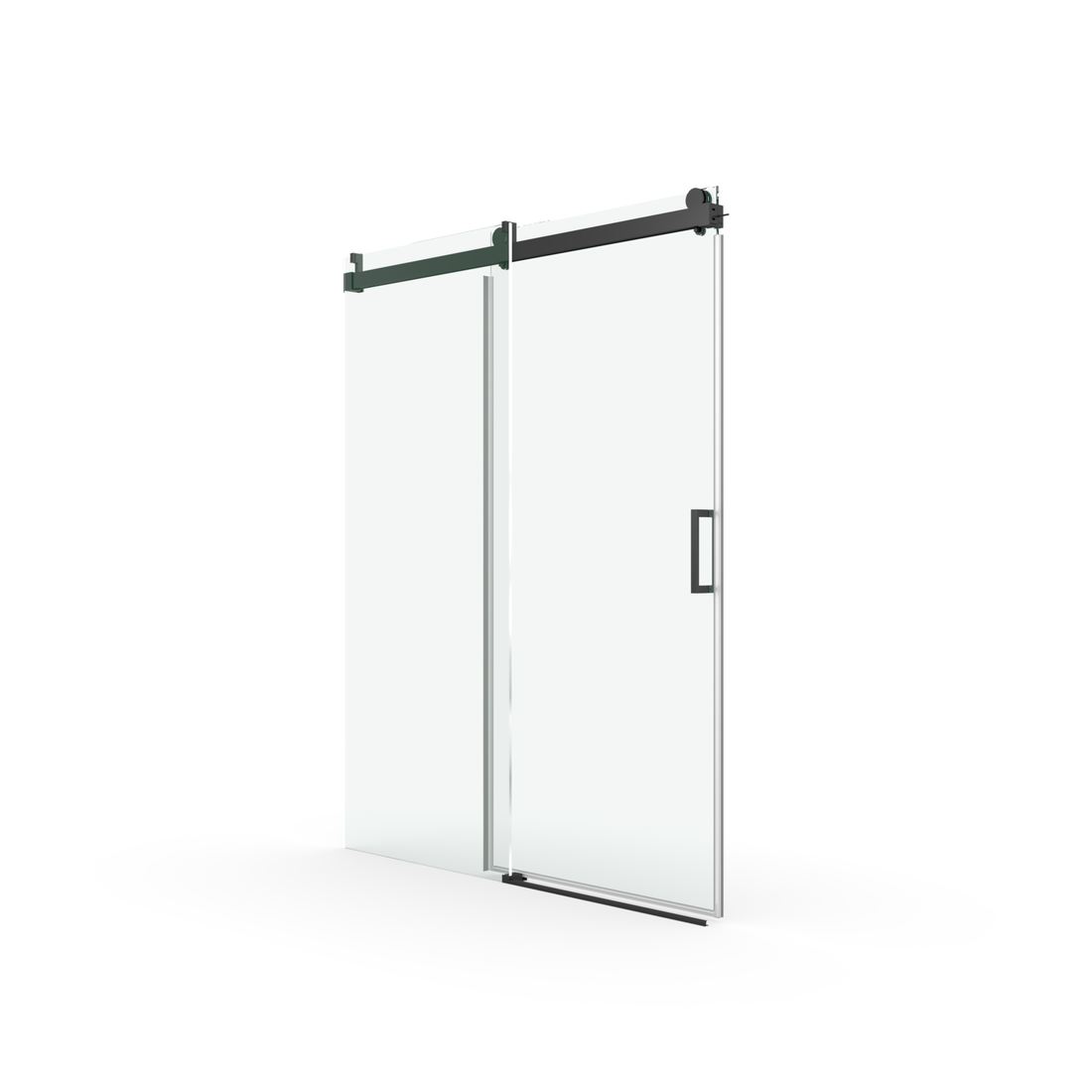 Frameless Sliding Bathtub Door 56 60 In.W X 62 In.H,Bypass Tub Glass Sliding Shower Doors,3 8" 10Mm Thick Clear Tempered Glass,Heavy Duty Stainless Steel Hardwares,2Pcs Rectangle Handles,Matte Black. Matt Black Stainless Steel
