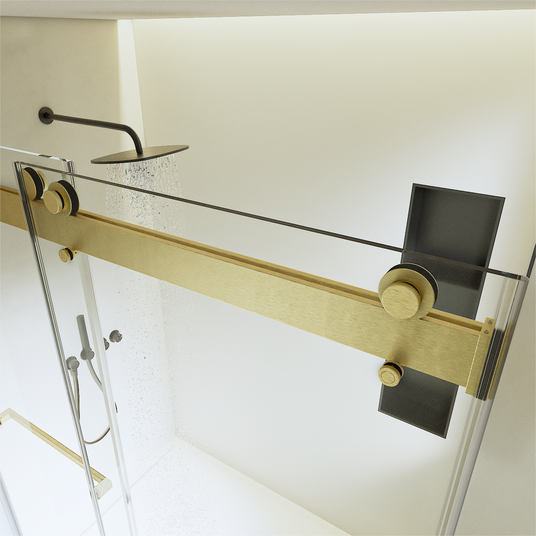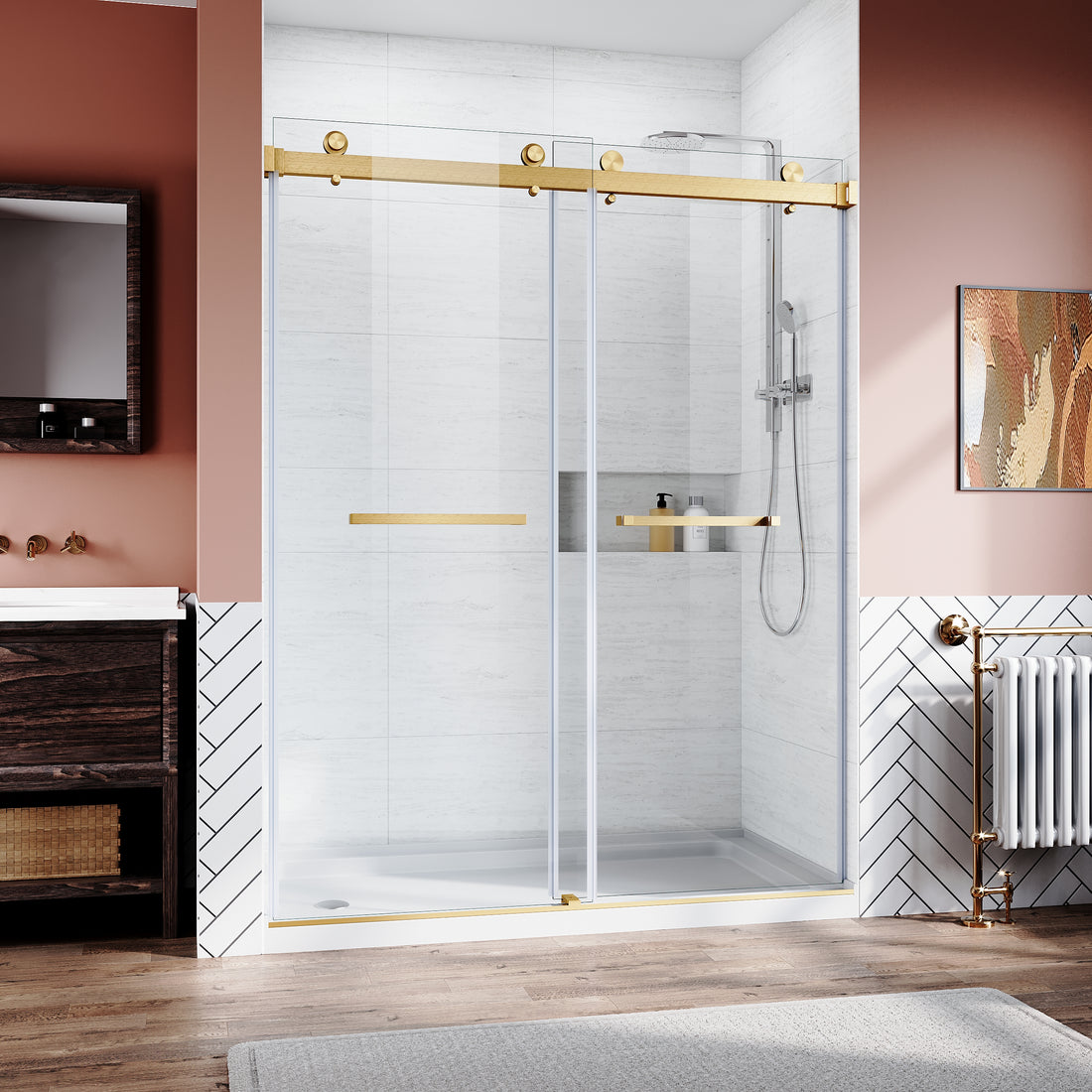 Frameless Sliding Shower Glass Door 56 60 In.W X 76 In. H,3 8" 10Mm Thick Clear Tempered Glass,Heavy Duty Stainless Steel Hardwares,Brushed Gold Brushed Gold Stainless Steel