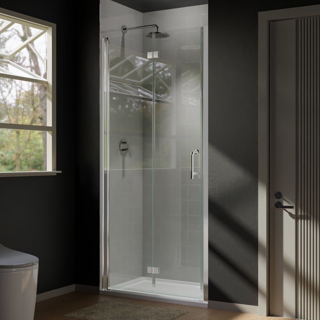 Name: 30"w x 72"h Fold Frameless Shower Door with Tempered Glass, Chrome Characteristics: Bi-Fold Frameless...