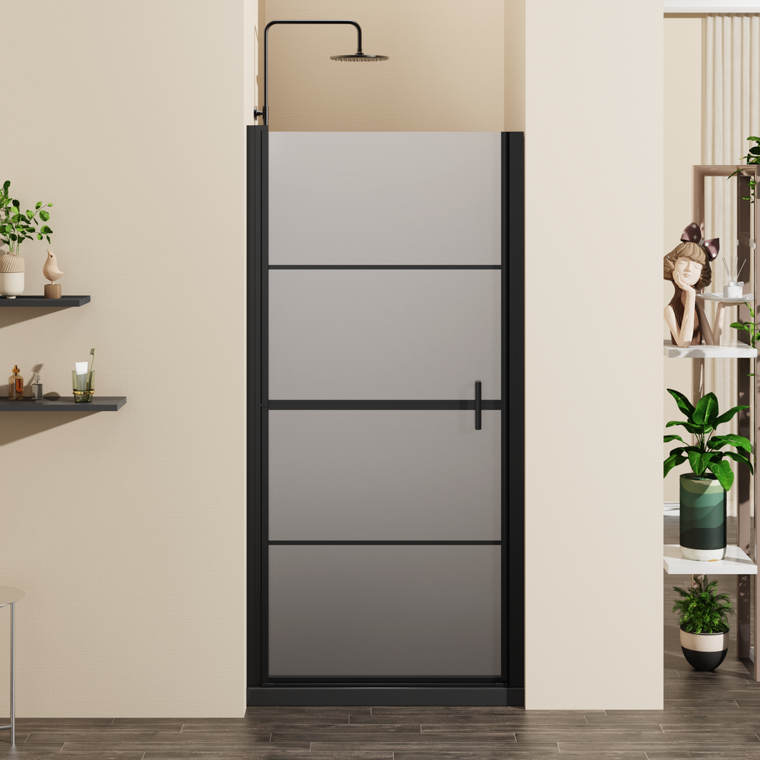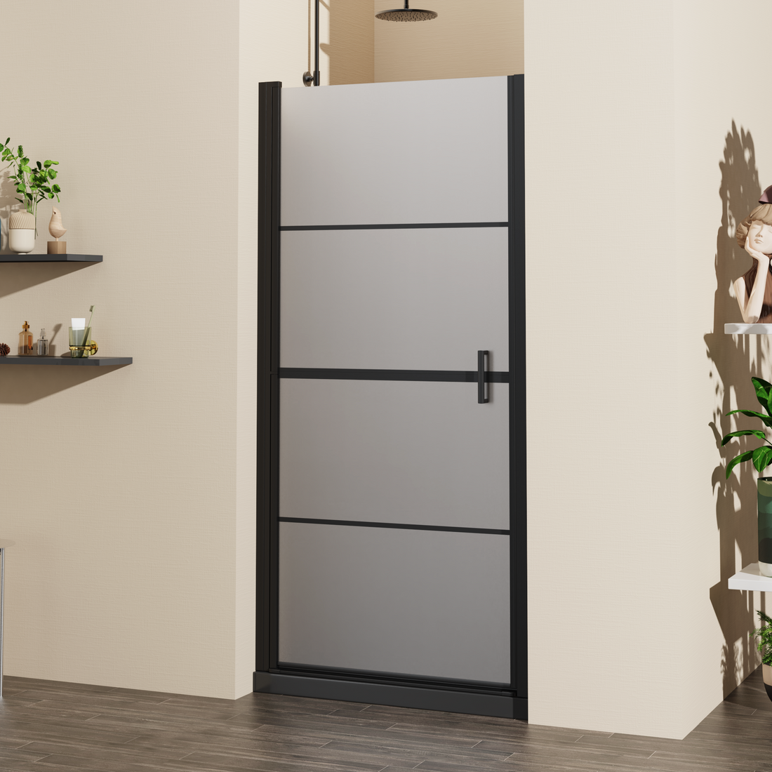 Goodyo 34" X 72" Shower Screen Door Frost Tempered Glass Black Tempered Glass