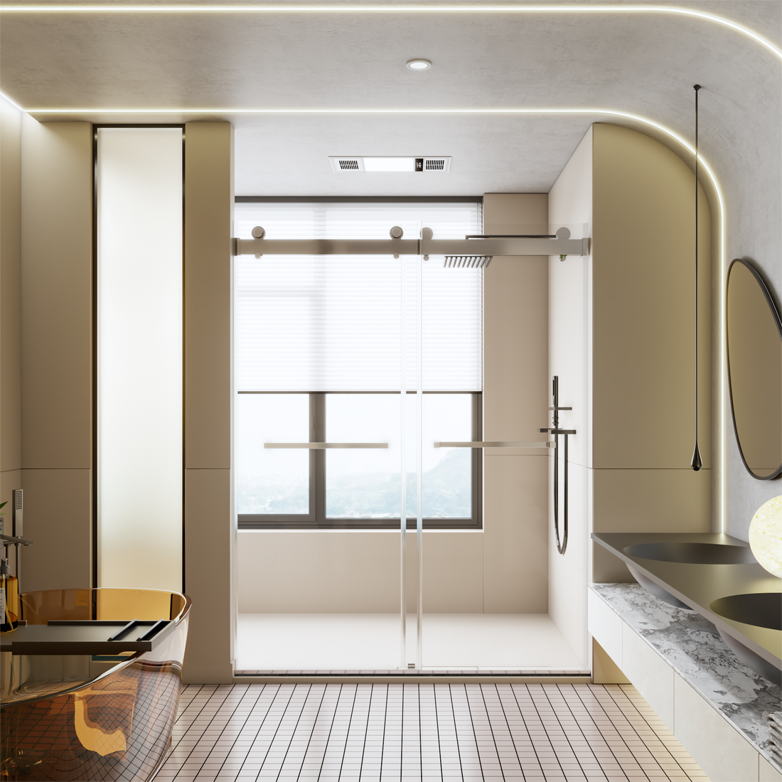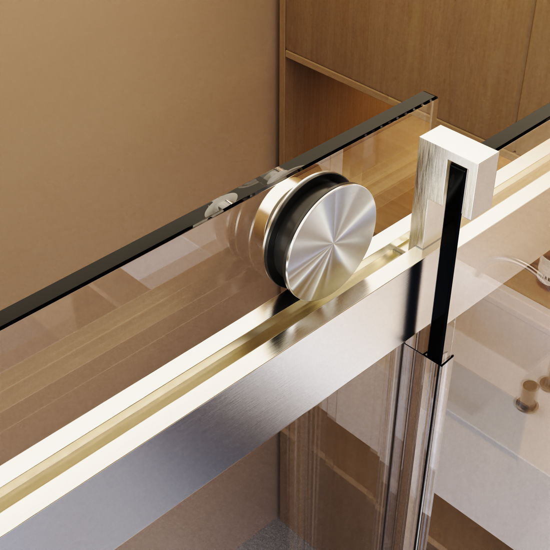 Frameless Sliding Glass Shower Doors 60" Width X 76"Height With 3 8" 10Mm Clear Tempered Glass, Brushed Gold Brushed Gold Bathroom American Design Stainless Steel Tempered Glass