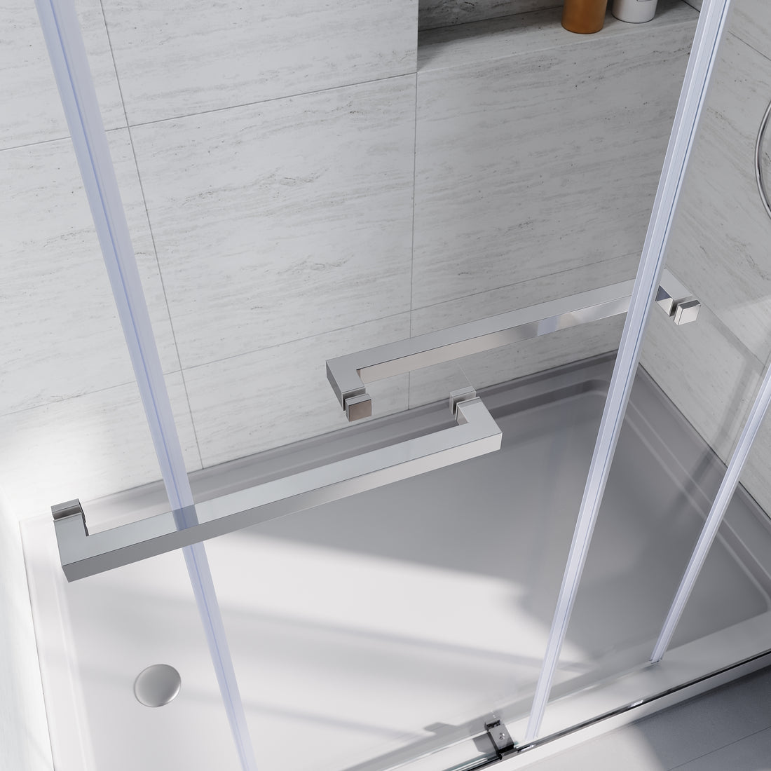 68 72 Inches *76 Inches Frameless Double Sliding Soft Close Shower Door, 3 8 Inches 10Mm Thick Sgcc Tempered Glass Door, Chrome Chrome Glass Metal