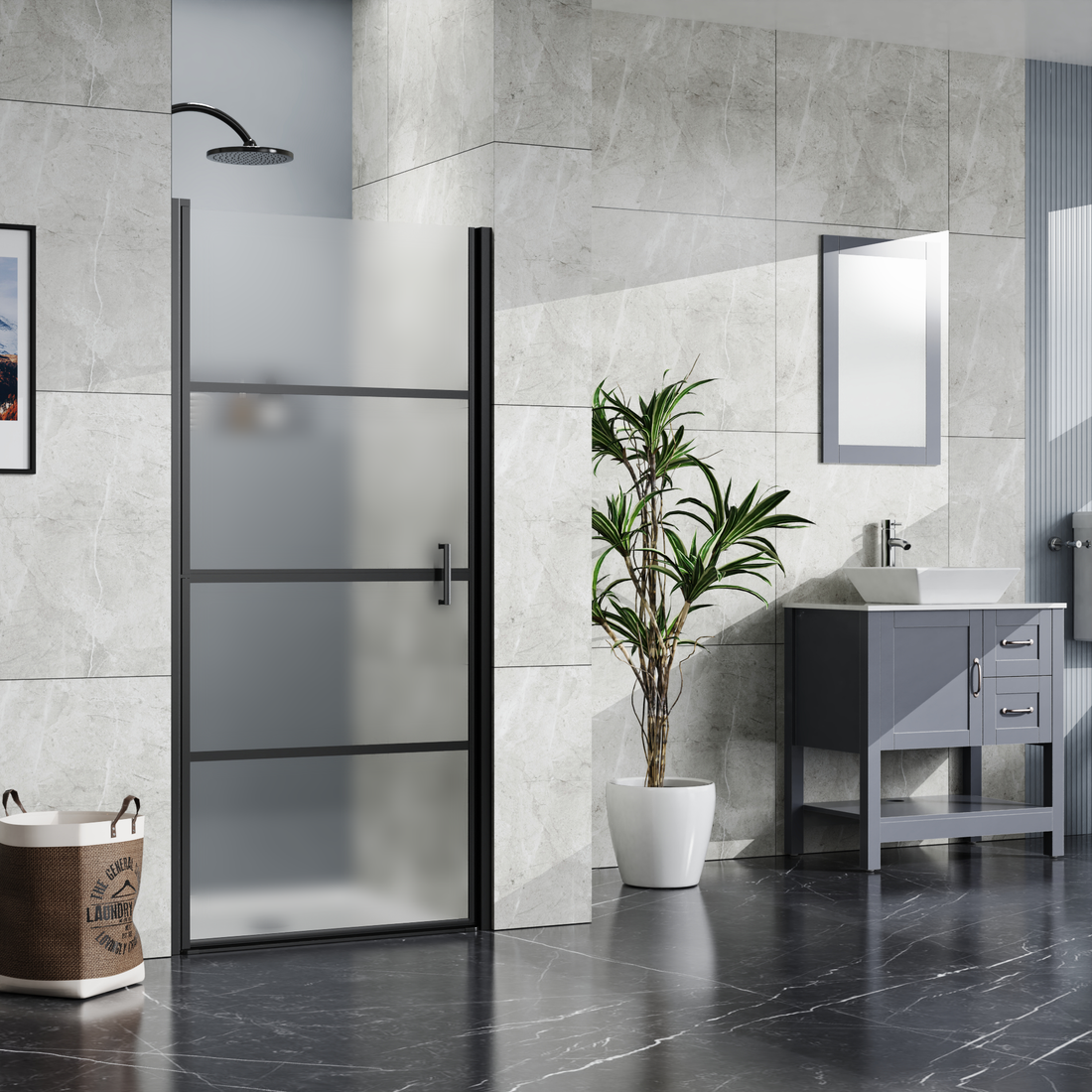 Goodyo Framed Hinged Shower Door,34"X72" Swing Tempered Glass Door, Black, Frosted Black Glass
