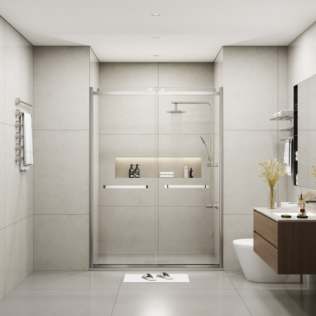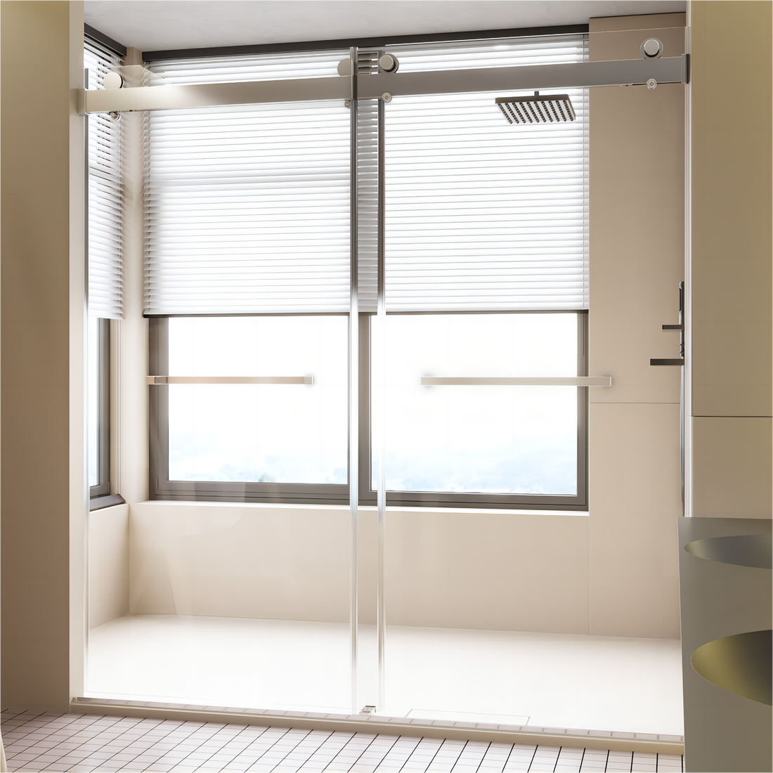 56 To 60 In. W X 76 In. H Double Sliding Frameless Soft Close Shower Door, Premium 3 8 Inch 10Mm Thick Tampered Glass And Easy Cleaning Coating In Chrome 23D02 60C Chrome Stainless Steel Tempered Glass